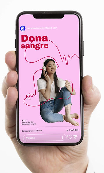 Este proyecto ficticio, desarrollado con fines académicos, propone una campaña para el Ayuntamiento de Madrid con motivo del Día Internacional del Donante de Sangre. El objetivo es generar una reflexión y destacar, de manera atractiva y creativa, la importancia de este acto altruista. Para ello, se diseñaron imágenes modernas, con colores vibrantes y una narrativa cautivadora que aporta calidez y evita que la comunicación resulte fría o excesivamente institucional.